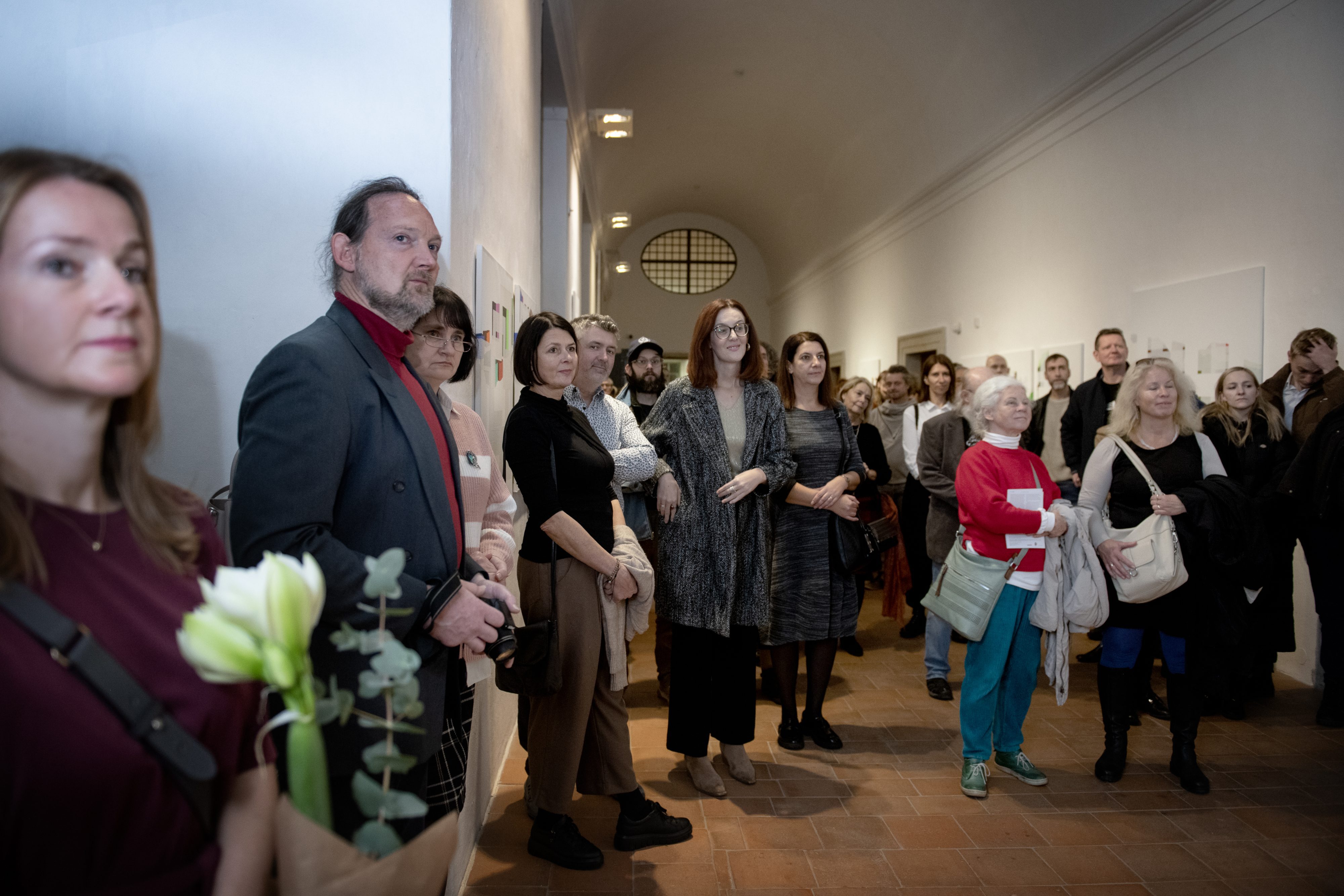 At GASK, Aldin Popaja is exhibiting paintings from two series: Flying Stones (2023–24) and Stone Sleepers (2025). Both series relate to the phenomenon of stećci, or tombstones, created between the mid-12th and early 16th centuries, which are mostly found in what is now Bosnia and Herzegovina. The uniqueness of these medieval limestone witnesses lies in the fact that they were created as a tradition common to the Bosnian, Catholic and Orthodox churches. The interconfessional character of stećci is most clearly evident in their visual symbolism, which transcends the boundaries of individual denominations (and even Christianity itself), such as the crescent moon, six-pointed star, spiral, rosette, lilies, vine leaves and grapes, birds, deer, horses, though also scenes from human life (hunting, chivalric tournaments and the well-known motif of a man with his right hand raised). In this spiritual inclusiveness (and especially in light of the often violent appropriation of identity symbolism in the modern era), Aldin Popaja finds a poignant testimony to the precious value of shared culture.