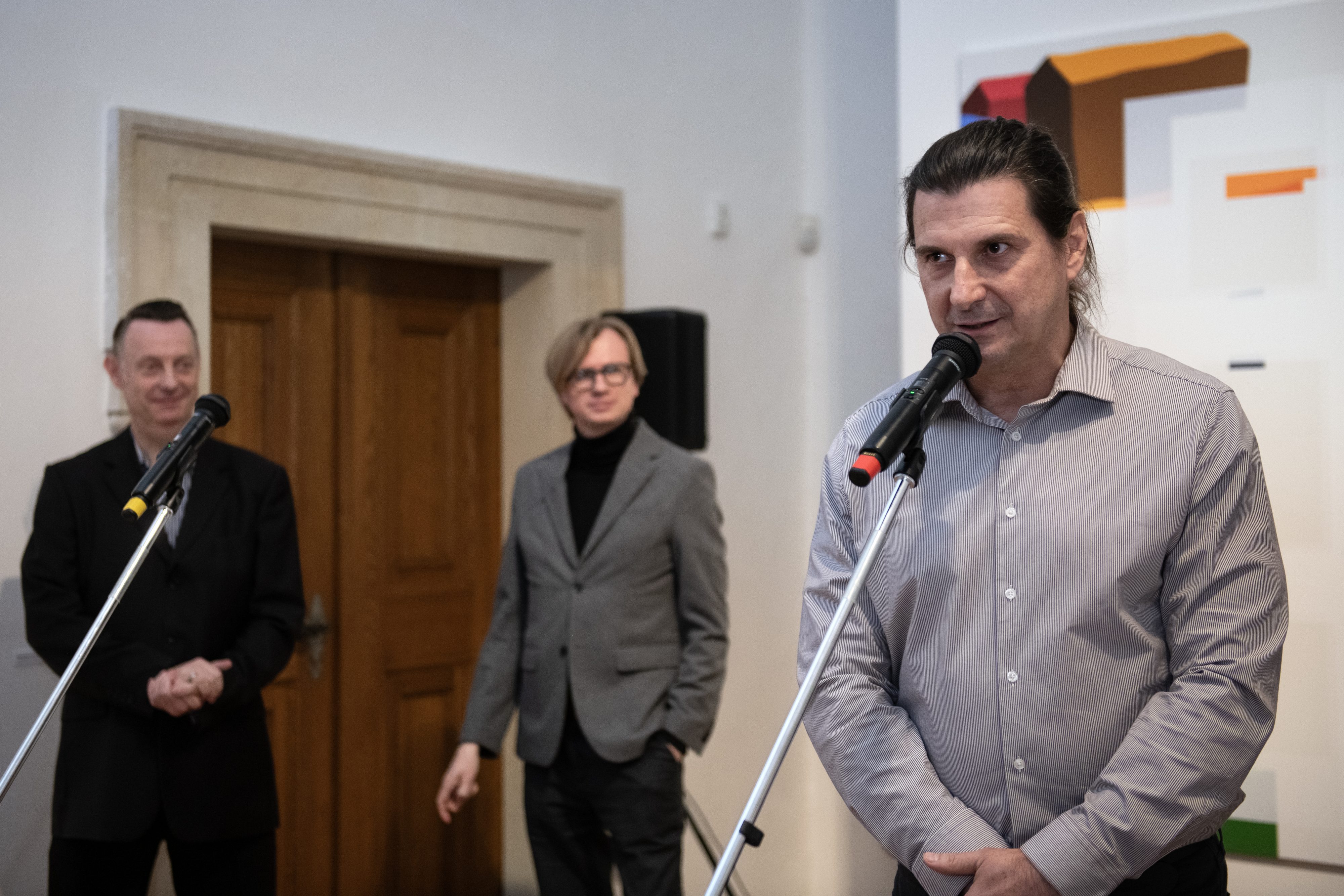 For thirty years, Popaja’s Bosnian identity has been closely contrasted with (and undoubtedly also enriched by) the culture of the Czech Republic. Following his personal experience of the brutality of military conflict, Popaja’s humanistic themes have an authenticity that stems from uncompromising reality. Whereas his artistic language was initially based on objective realism, since 2010 he has been focusing on the idea of the symbol, leading him to the abstracted expression of signs and geometric shapes or patterns. Colourism, in other words the use of colour as a constructive (and meaning-related) element of the pictorial composition, is fundamental to Popaja’s work.