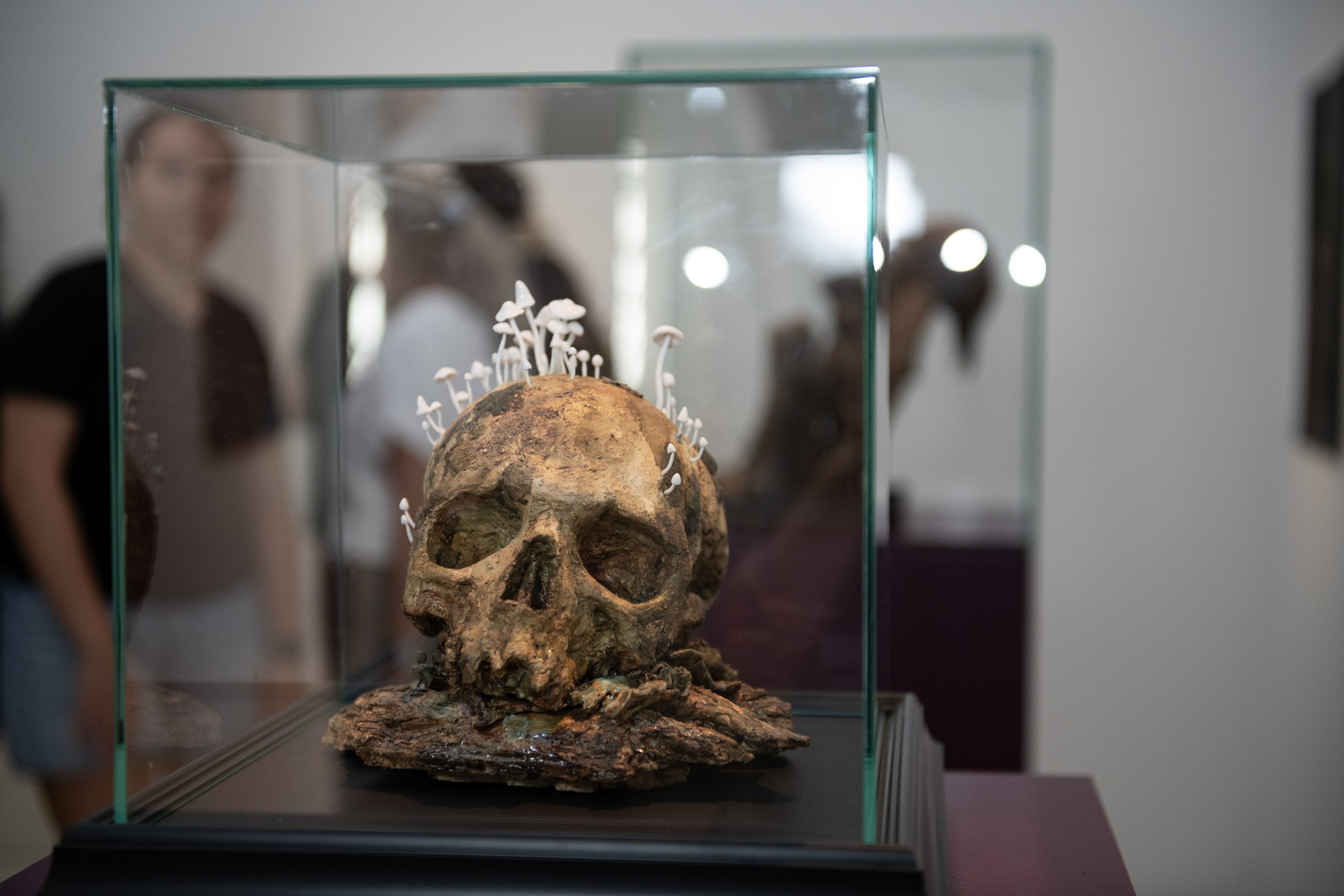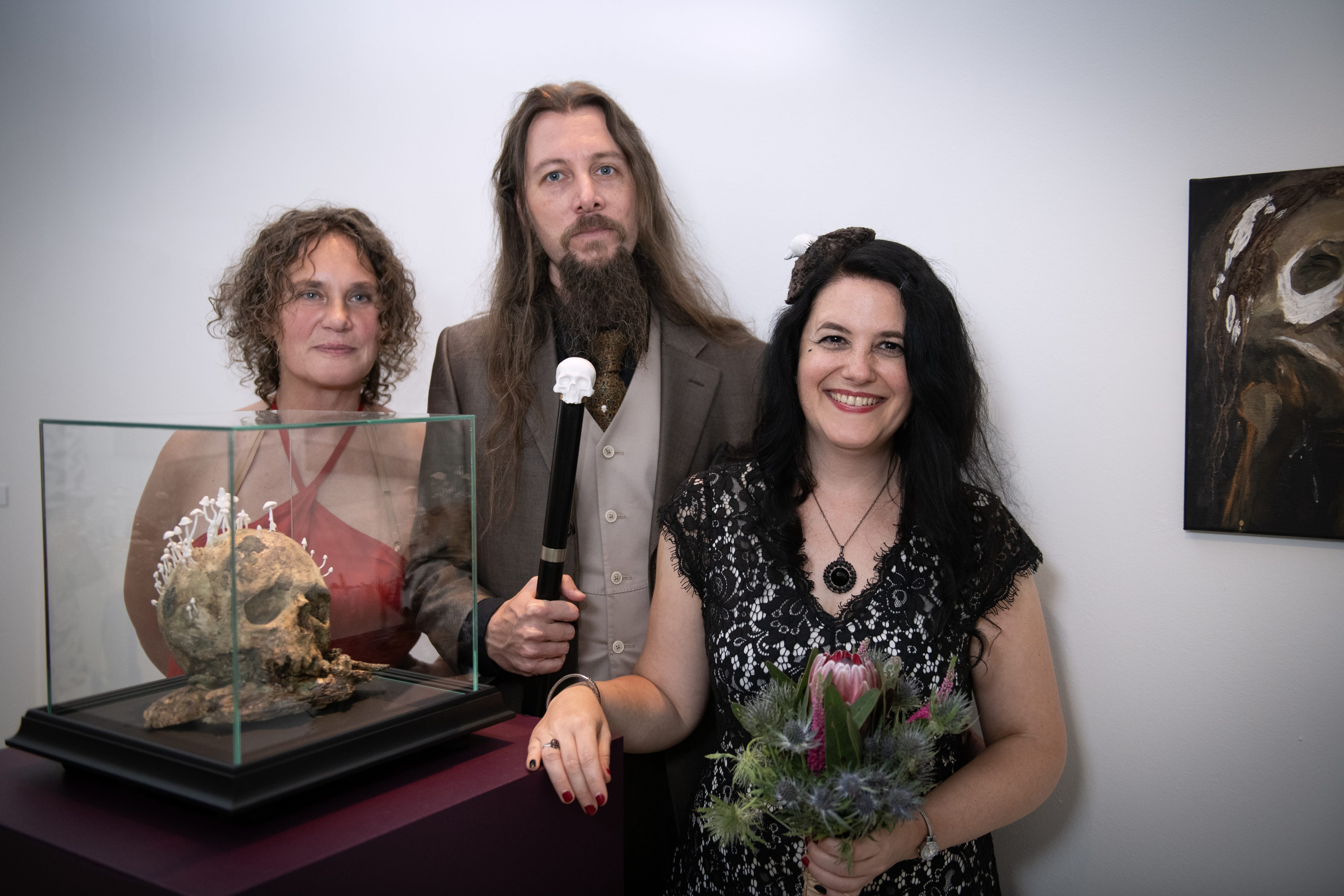 Tereza Eisnerová’s sculptural works often straddle the line between fine art and small-scale decorative sculpture that has been placed in the role of jewellery. Her exceptional sense for detail has led her to create small works, using sculptural modelling to make each piece of jewellery a unique work of art. Her relationship to the figure sculpture of past eras, in particular Art Nouveau and the art of the Decadents, means that she works with motifs associated with those movements: a focus on ornamentation, the magic of the plant and animal kingdoms, human skulls and vanitas. Snapdragons, Flowers of Evil was made as an homage to the ‘accursed poet’ for the exhibition Alone in the Crowd: Charles Baudelaire and Czech Art. She is similarly fascinated by the surrealist world of Jan Švankmajer and his bizarre objects and assemblages inspired by animals and fossils. Nevertheless, she discovered her central theme – the skull – spontaneously while still at the Václav Hollar secondary school of art in the second half of the 1990s. And her interest in anatomy and in collecting bones and objects from nature goes even further back. She revisited the subject of the vanitas after graduating from the Academy of Fine Arts in Prague, and around 2018 followed on this theme by working with sculptures of mummies and skeletons that maintain a relationship with the physical world in order to ensure eternal life. In these works, she explored questions of physical ephemerality, mortality and the indestructible soul.